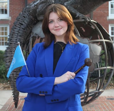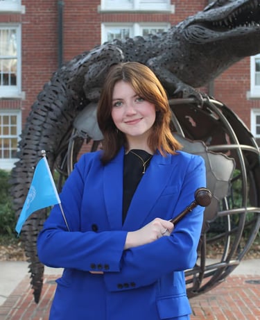 Noelle Morey (she/her) is a fourth-year Environmental Science student at the University of Florida with a minor in Communication Studies and Agricultural & Natural Resource Law. She currently has the pleasure of serving as the President of UF Model UN. After spending eight years in Model Un, and participating in over 30 General Assemblies (with six of them being virtual), she is so excited to bring this committee to life alongside all of you.